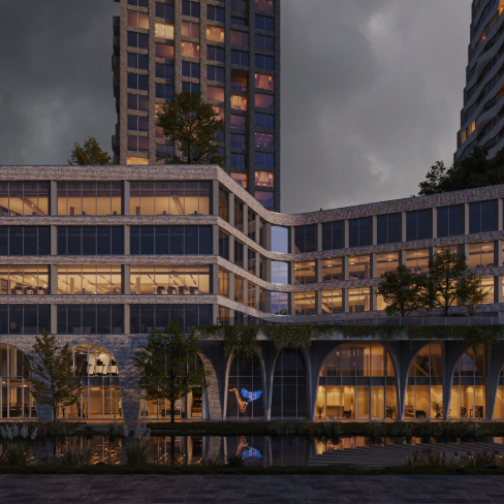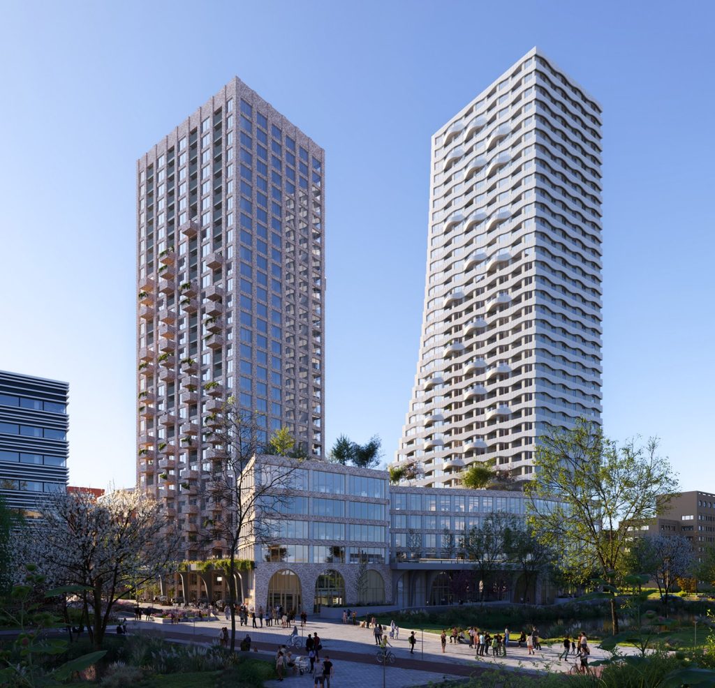 The Ensemble is een iconisch herkenningspunt in Amsterdam Zuidoost, met twee opvallende torens van 100 meter en 120 meter hoog. Het is de meest duurzame gemengde ontwikkeling in de stad, met een naadloze mix van woon-, kantoor- en commerciële ruimtes over 84.000 m² GBA. The Ensemble omvat 592 appartementen, waarvan 415 woningen in het middensegment huur, waardoor een levendige en inclusieve stedelijke gemeenschap ontstaat. In het hart van het project bevindt zich een levendige plint met 3.000 m² aan voorzieningen, variërend van een fitnessruimte tot een restaurant en meer.